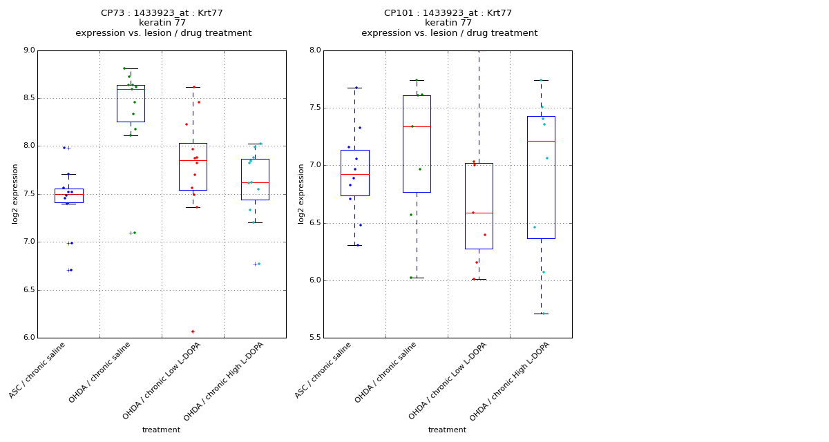 | expression:C(dose)[T.1] | -32.7755 | 18.923 | -1.732 | 0.099 | -72.383 6.832 |