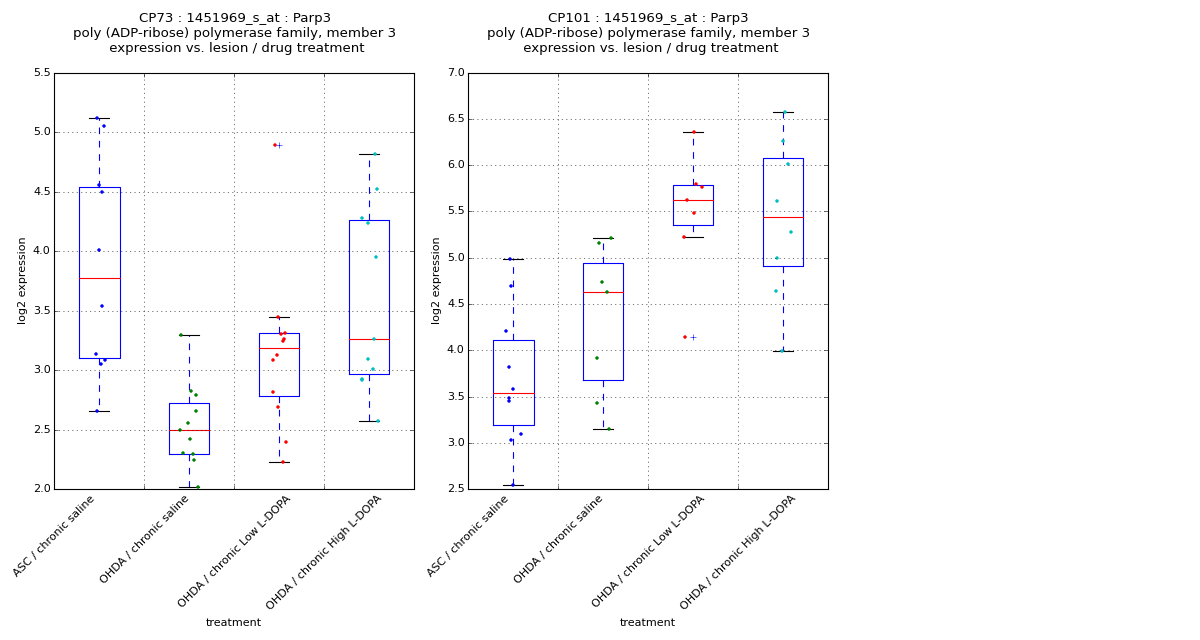 | expression:C(dose)[T.1] | -11.0180 | 20.299 | -0.543 | 0.598 | -55.696 33.660 |